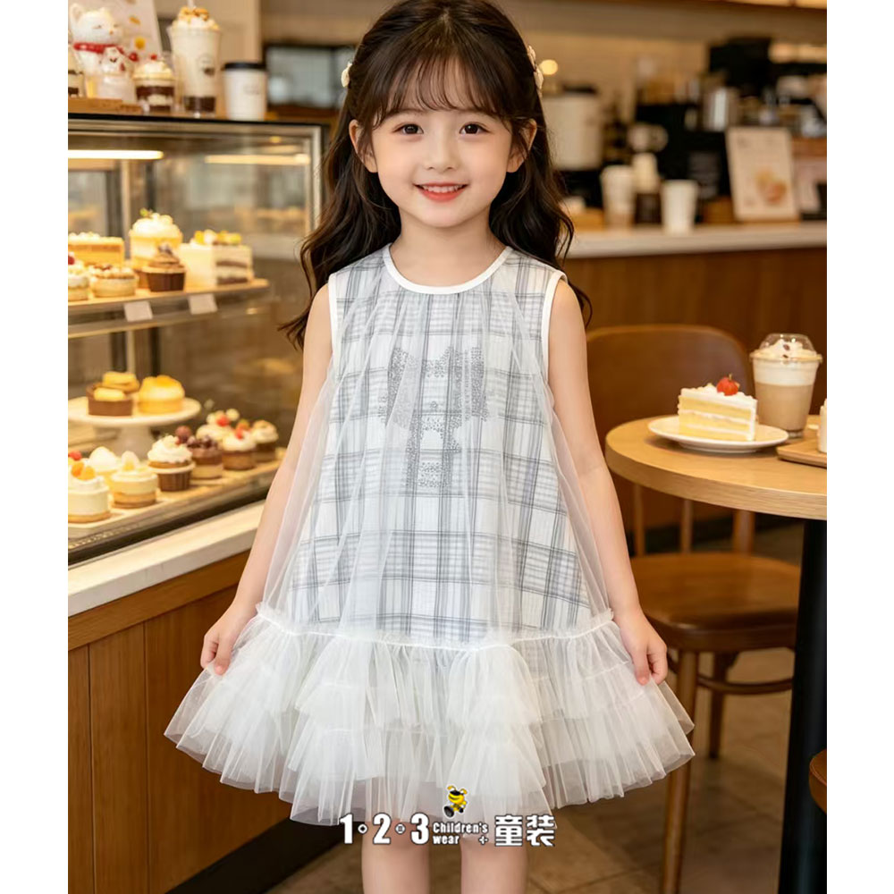 【五一限价38.9元】米白 夏款 女小童8871 MSDD时尚无袖连衣裙1+2=3童装连锁
