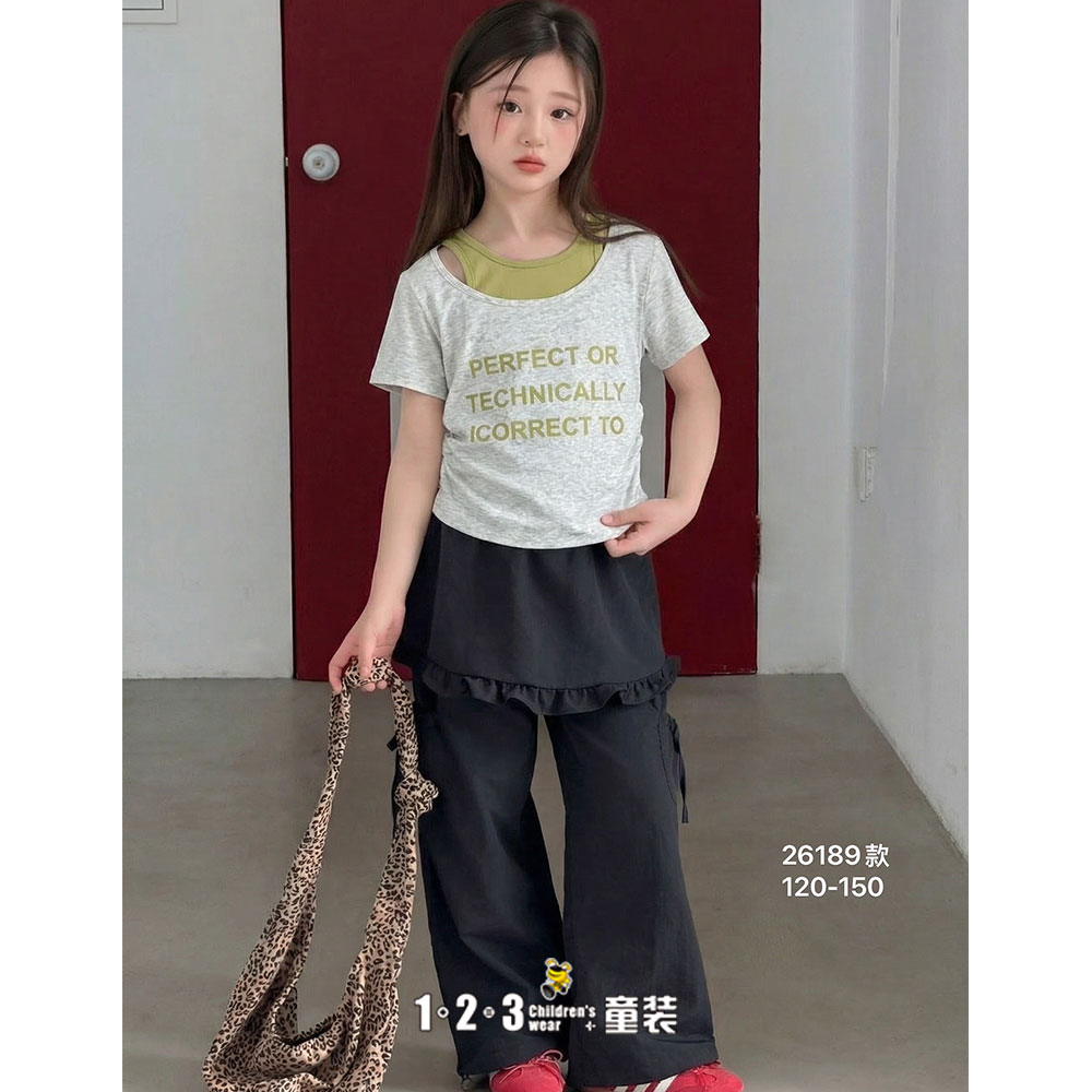 【五一限价24.9元】【特价】烟灰 夏款 女中童26189 XTDD时尚短T1+2=3童装连锁