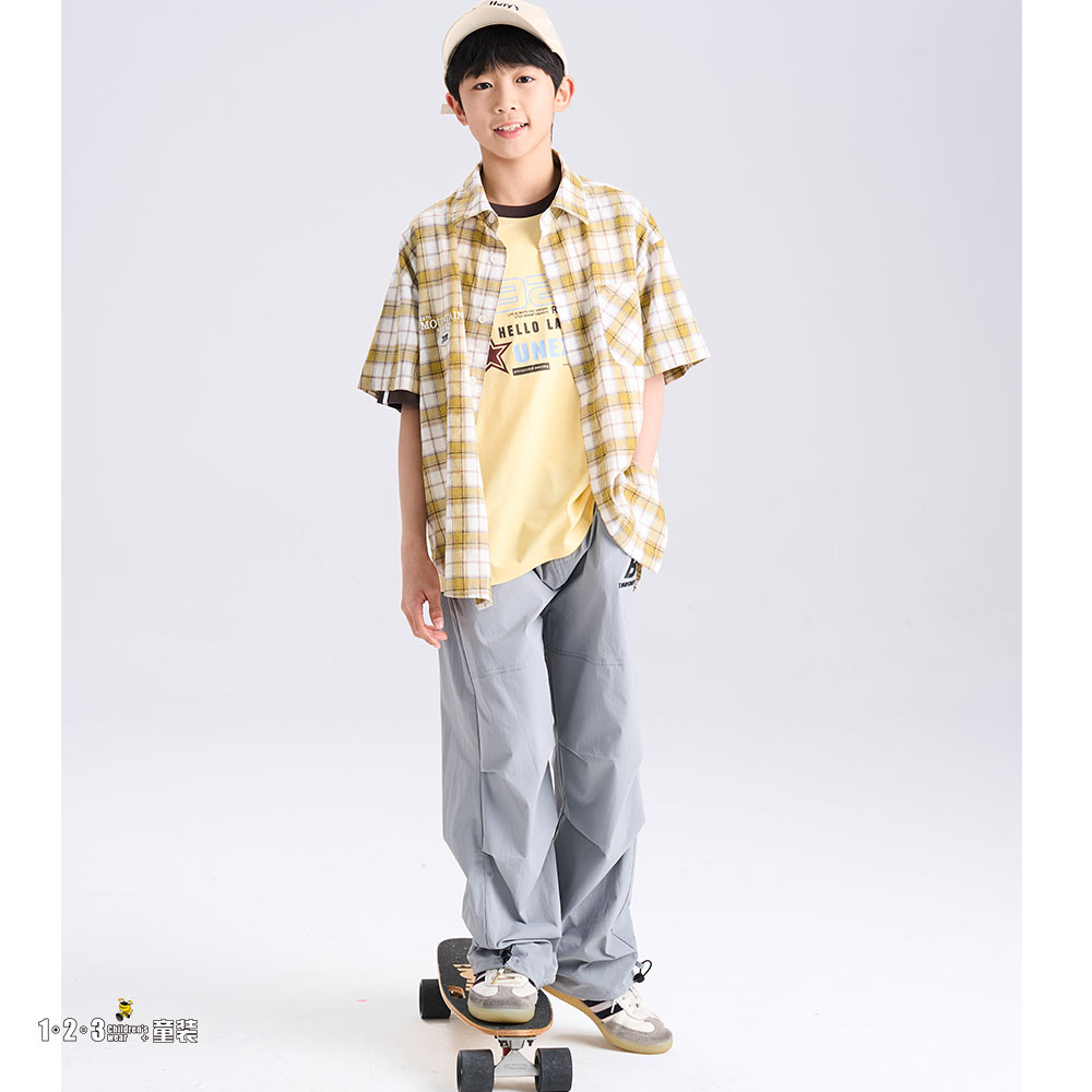 (多多同款)绿 夏款 男大童0271 DDDD时尚短袖衬衫1+2=3童装连锁