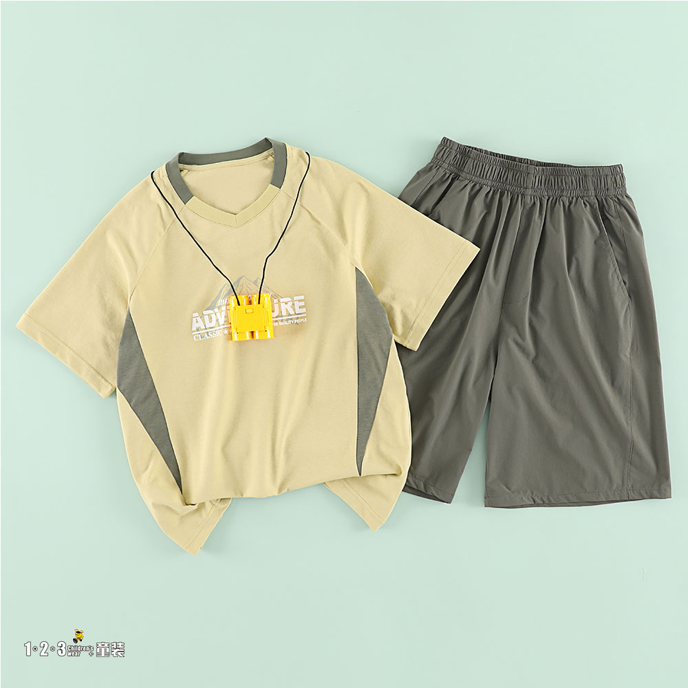 (多多同款)绿 夏款 男大童0633 DDDD时尚短袖套装1+2=3童装连锁