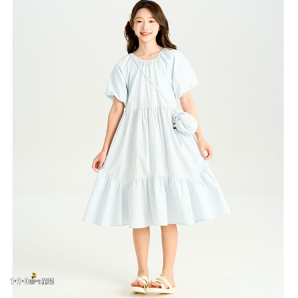 (多多同款)浅蓝 夏款 女大童0507 DDDD时尚短袖连衣裙1+2=3童装连锁