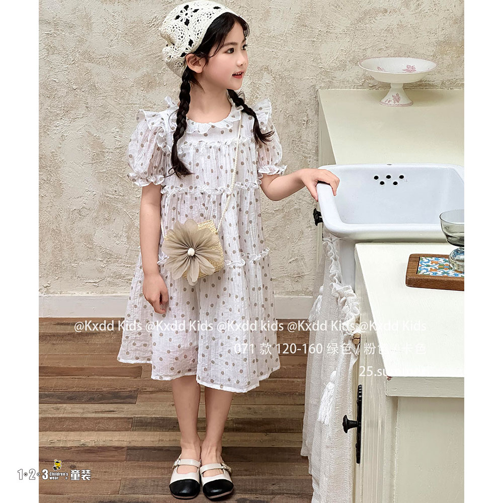 卡其 夏款 女中童071 HLDD时尚短袖连衣裙123童装连锁