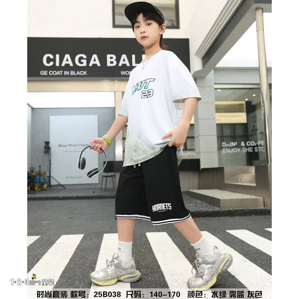 绿 夏款 男大童25B038 KLDD时尚短袖套装123童装连锁
