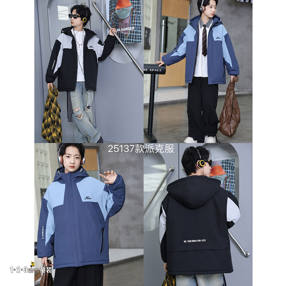 (兔毛派克服)蓝 冬款 男大童25137 FLDD时尚薄棉衣123童装连锁