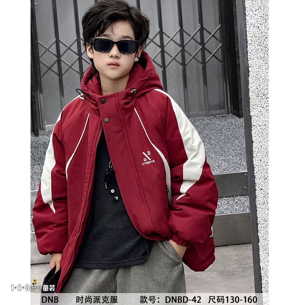 红 冬款 男中童42 DNDD时尚薄棉衣123童装连锁