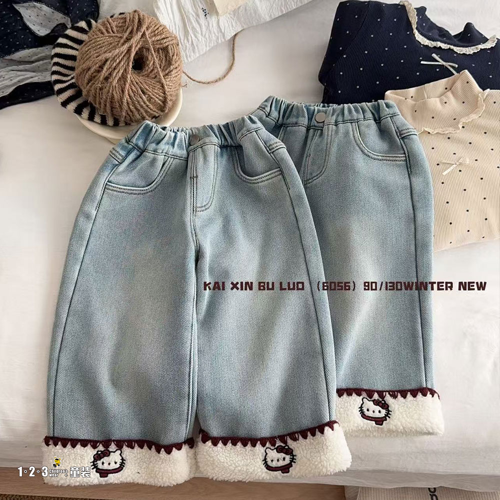 【专属福利45.9元】【特价】蓝 冬款 90-130女小童6056 KXDD时尚牛仔棉裤123童装连锁