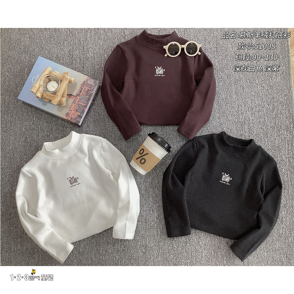 (单层加厚慕斯羊绒)【特价】杏 冬款 男小童51008 QWDD时尚厚打底衫123童装连锁