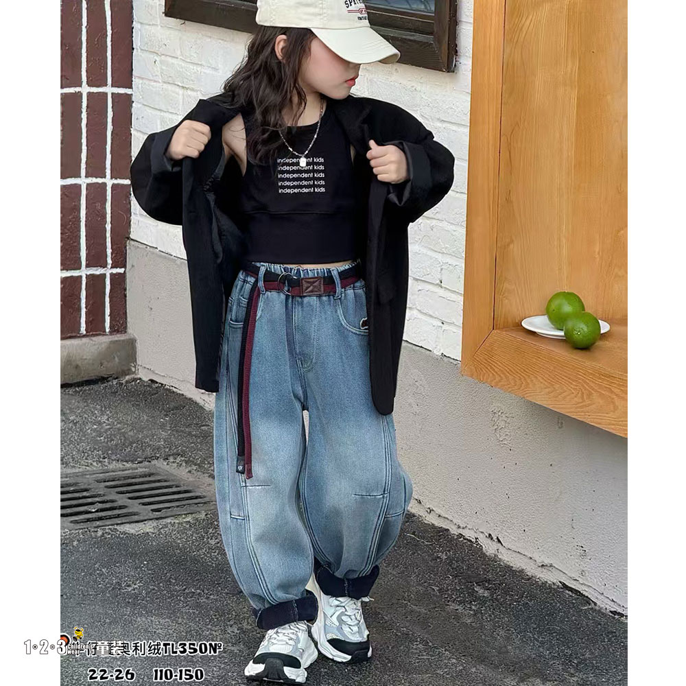 (一体绒)【特价】浅蓝 冬款 110-150男中童350 JKDD时尚牛仔夹裤123童装连锁