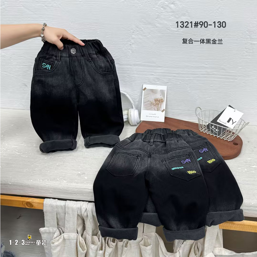 【特价】深蓝 冬款 90-130男小童1321 YXDD时尚牛仔夹裤123童装连锁