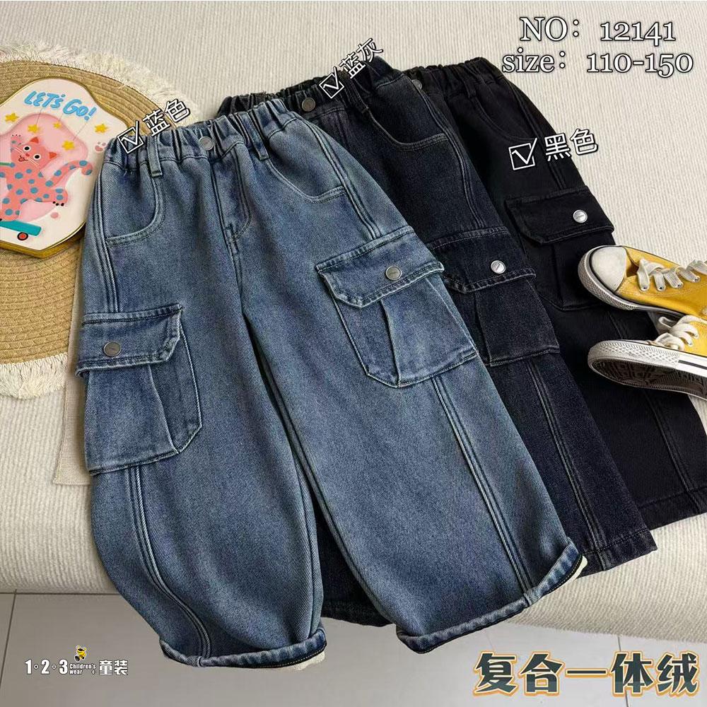 【双十一活动53.9元】【特价】灰蓝 冬款 110-150男中童12141 BBDD时尚牛仔夹裤123童装连锁
