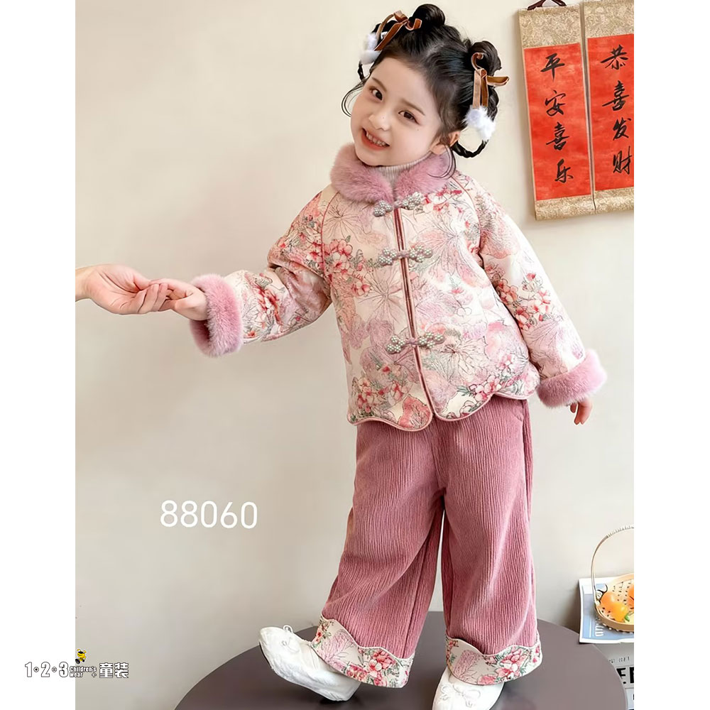 【双十一活动70.9元】粉 冬款 女小童88060 LJDD时尚长袖厚套装123童装连锁