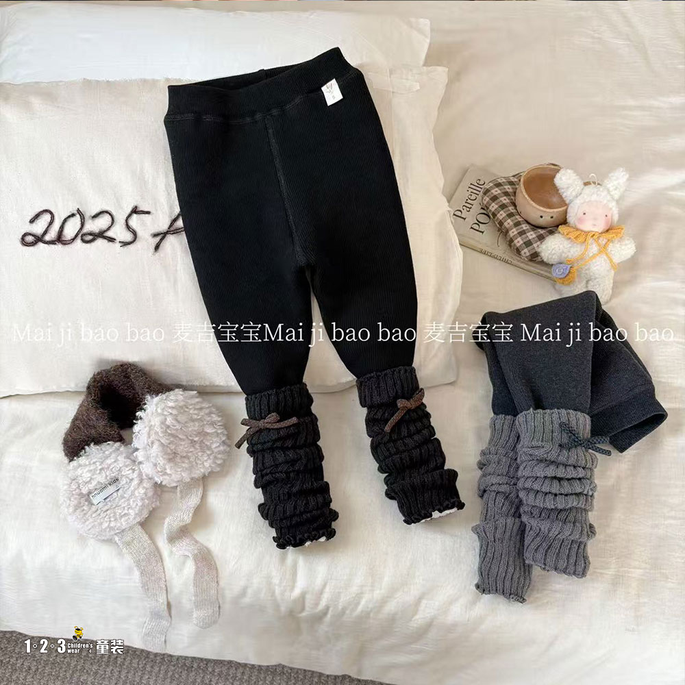 (蚕丝棉)【特价】深灰 冬款 100-140女小童W004 TMDD时尚厚打底裤123童装连锁