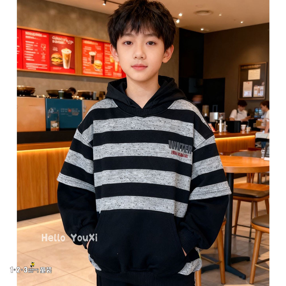 【特价】黑 冬款 男中童395 FXDD时尚套头衫123童装连锁