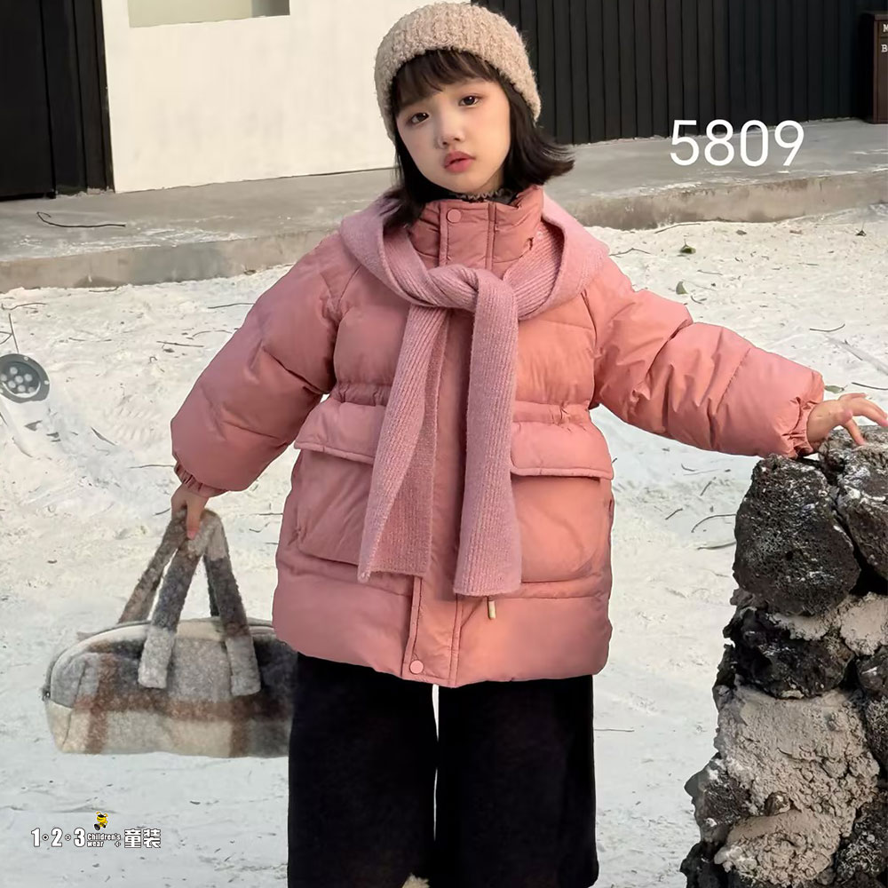粉 冬款 女中童5809 JJDD时尚厚棉衣123童装连锁