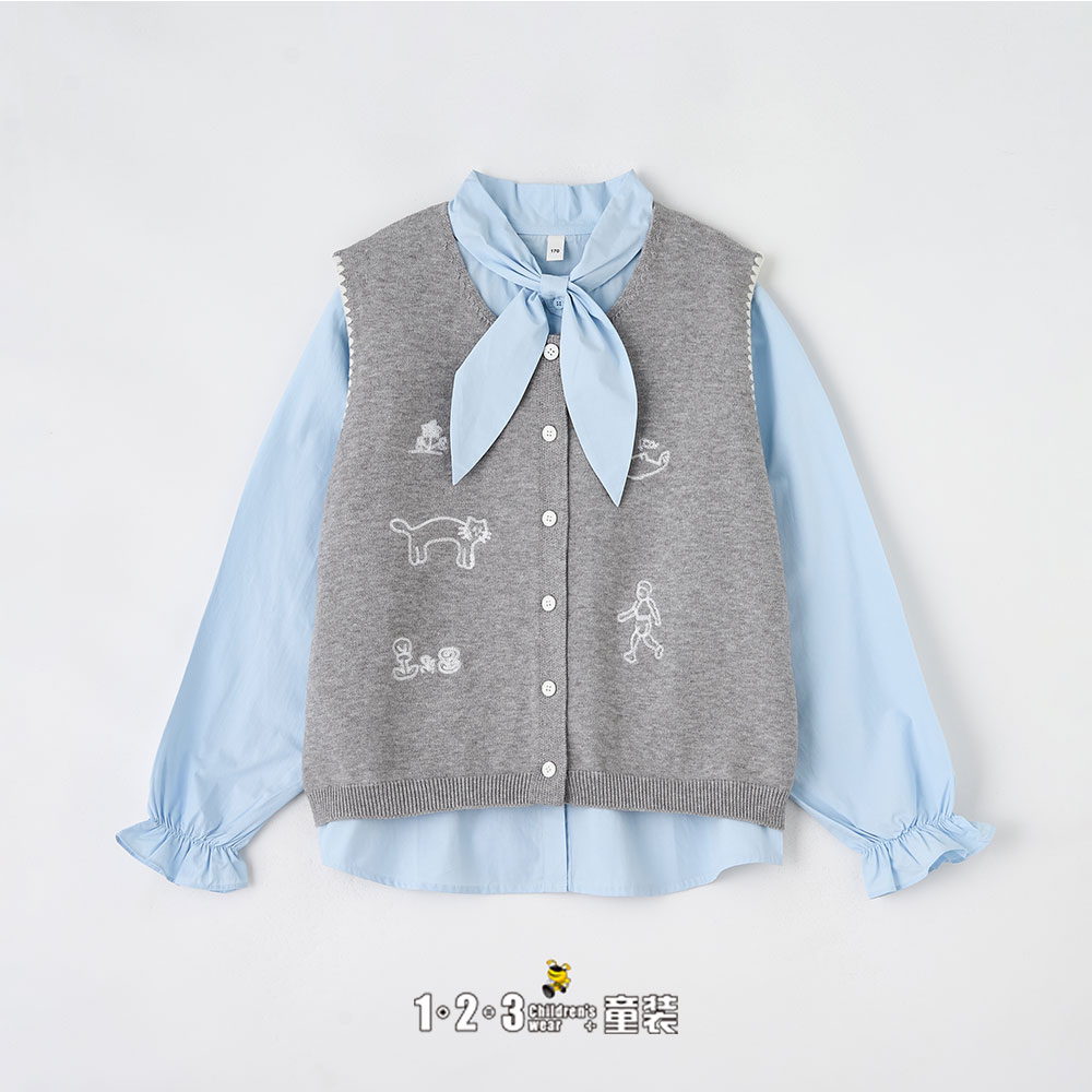 《甜美》(多多同款)浅蓝 春款 女大童6F20132 DDDD时尚长袖套装1+2=3童装连锁