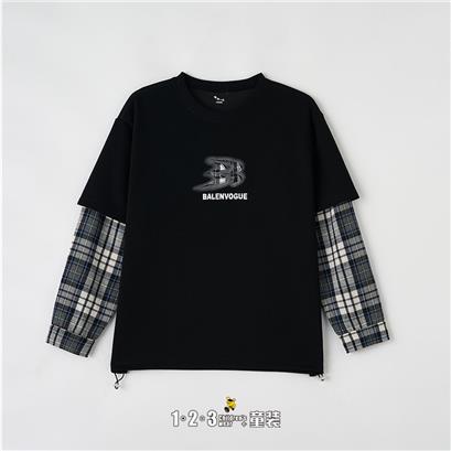《学院》(多多同款)【特价】黑 春款 男大童6B8028 DDDD时尚薄套头衫1+2=3童装连锁