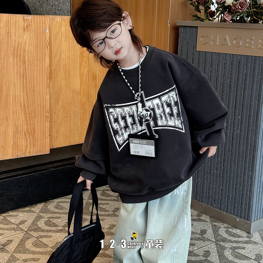 《复古》【特价】深灰 春款 男中童CK9290 WQDD时尚薄套头衫1+2=3童装连锁