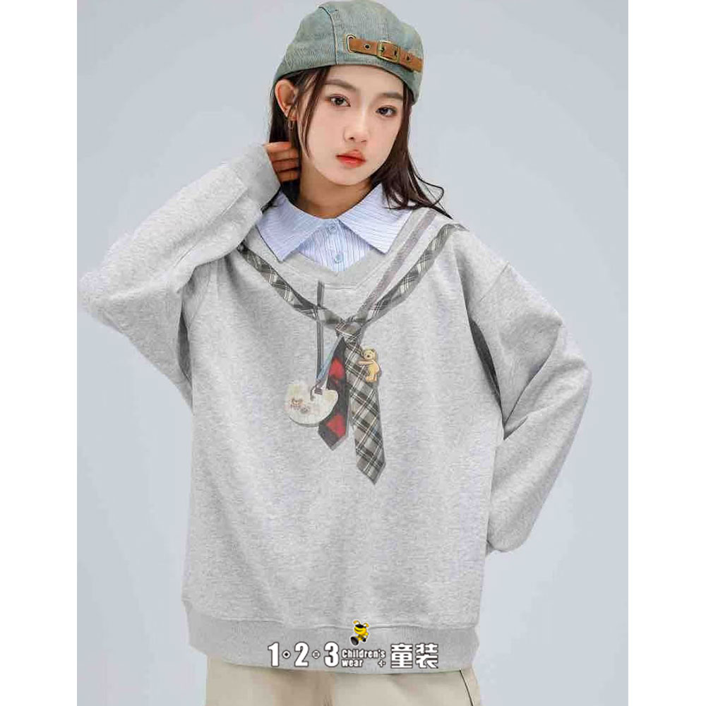 《学院》【特价】烟灰 春款 女大童CK26607 XTDD时尚薄套头衫1+2=3童装连锁