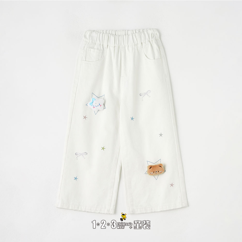 《甜美》(多多同款)【特价】白 春款 110-140女中童6F20178 DDDD时尚牛仔单裤1+2=3童装连锁
