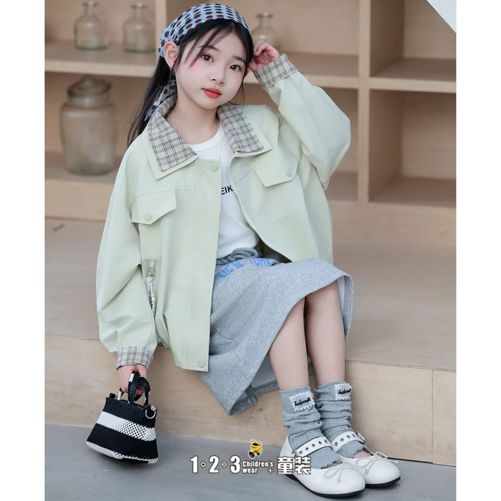 《学院》绿 春款 女中童CKAA801 HYDD时尚单层外套1+2=3童装连锁