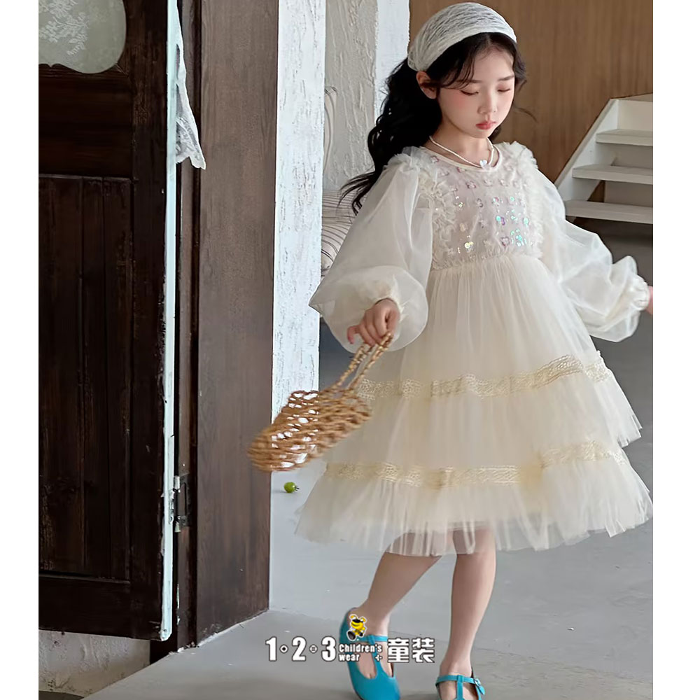 《甜美》米黄 春款 女中童CK8812 MSDD时尚长袖连衣裙1+2=3童装连锁