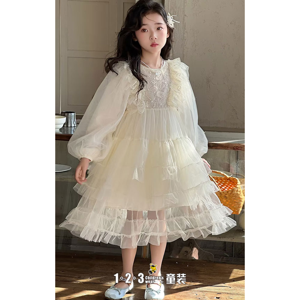 《甜美》米黄 春款 女中童CK8806 MSDD时尚长袖连衣裙1+2=3童装连锁