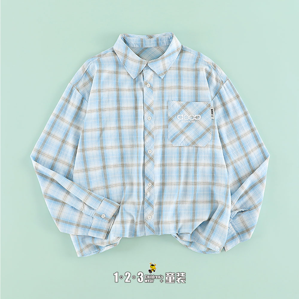 《复古》(多多同款)蓝 春款 男大童6M20299 DDDD时尚长袖衬衫1+2=3童装连锁