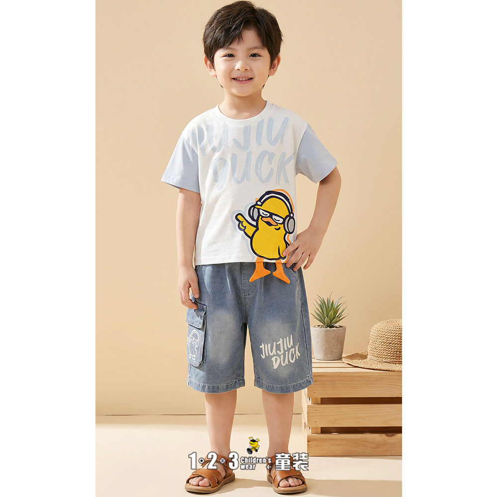 《休闲》【特价】蓝 夏款 男小童XK32580 CJDD时尚短袖套装1+2=3童装连锁