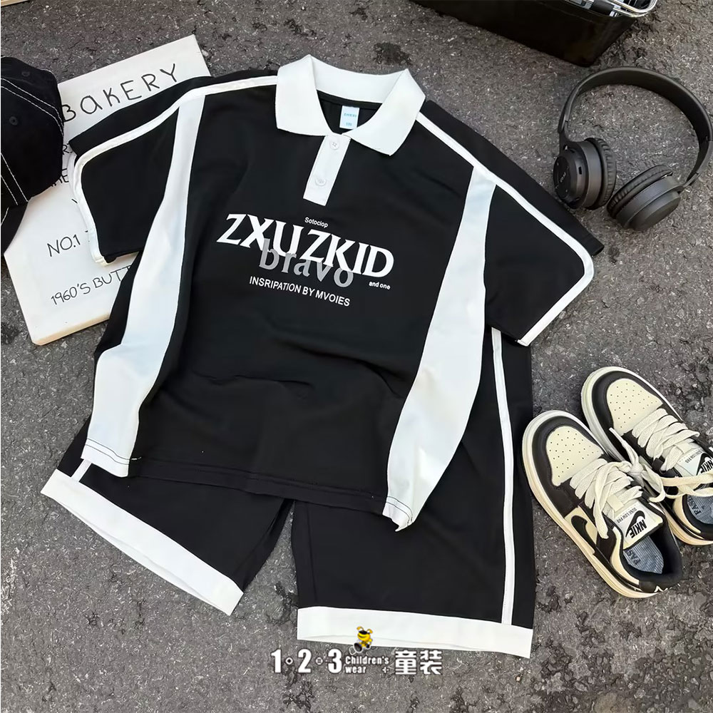《潮酷》【特价】黑 夏款 男大童XK18031 ZXDD时尚短袖套装1+2=3童装连锁