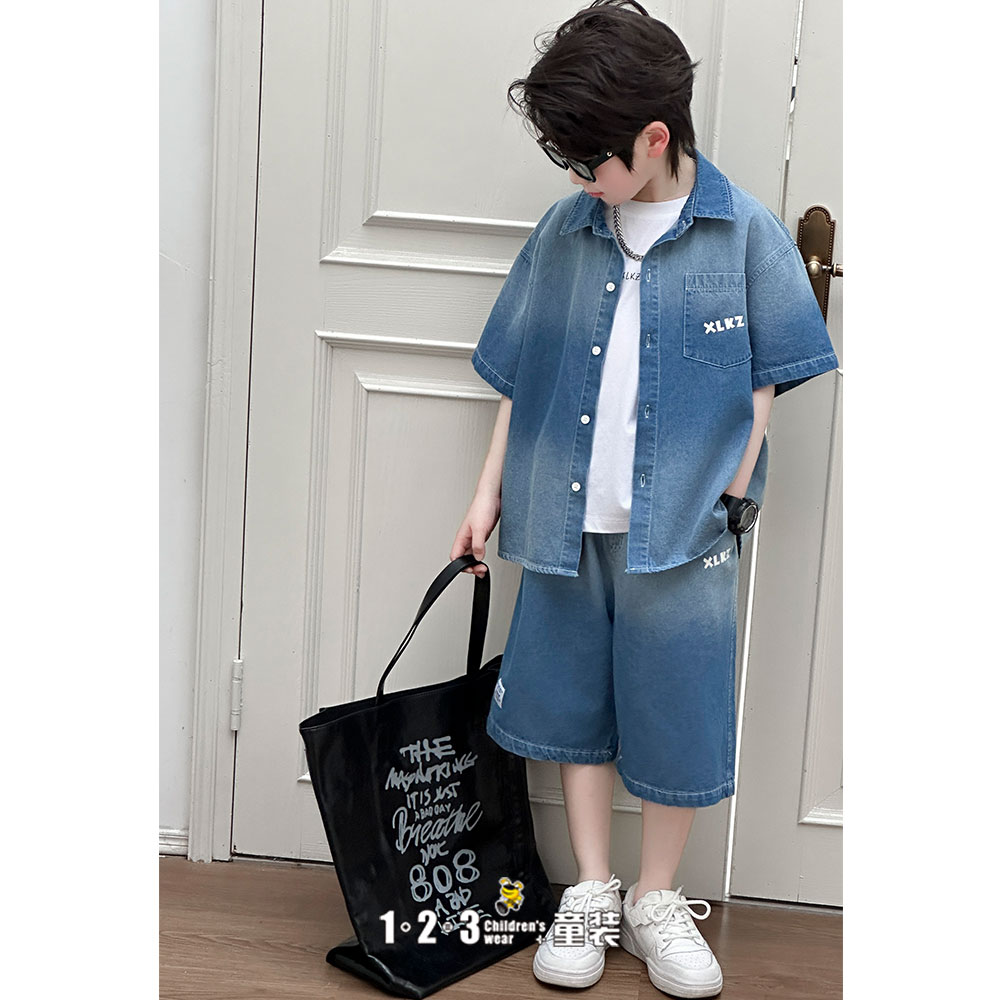 《复古》【特价】蓝 夏款 男中童XK8613 XLDD时尚短袖套装1+2=3童装连锁