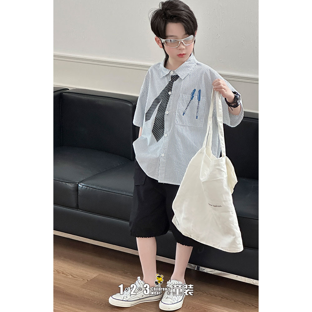 《学院》【特价】黑 夏款 男中童XK8612 XLDD时尚短袖套装1+2=3童装连锁