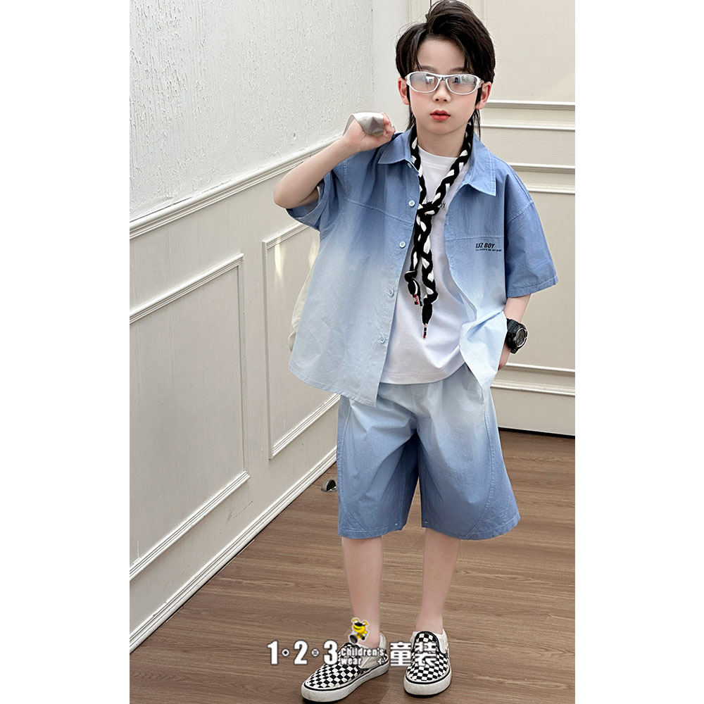 《复古》【特价】蓝 夏款 男中童XK8610 XLDD时尚短袖套装1+2=3童装连锁