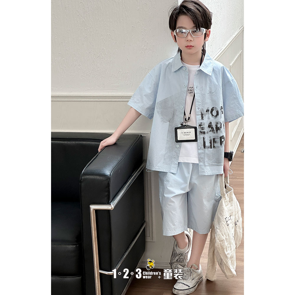 《复古》【特价】蓝 夏款 男中童XK8609 XLDD时尚短袖套装1+2=3童装连锁