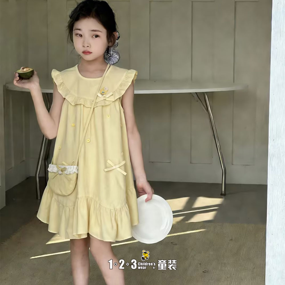 《学院》黄 夏款 女小童XKR2690 RYDD时尚吊带连衣裙1+2=3童装连锁
