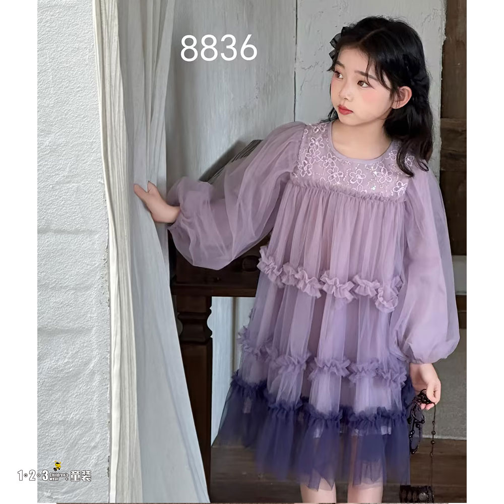 紫 春款 女中童8836 MSDD时尚长袖连衣裙123童装连锁