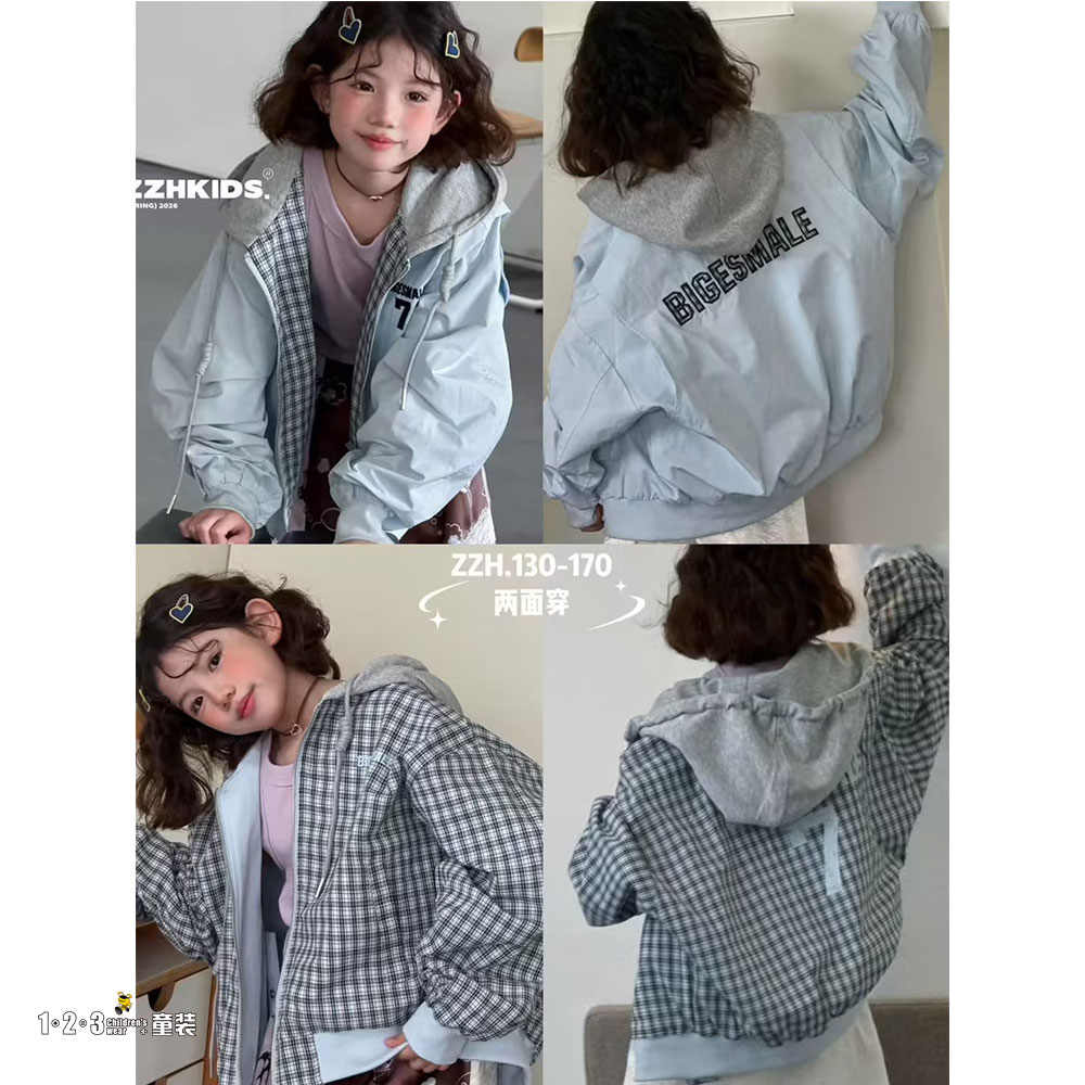 【两面穿】蓝 春款 女大童55037 ZZDD时尚单层外套123童装连锁