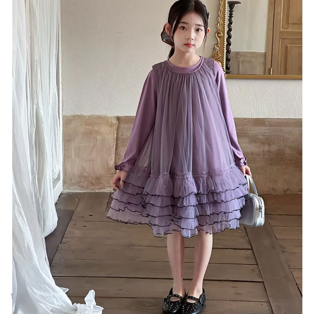 紫 春款 女中童9901 MSDD时尚长袖连衣裙123童装连锁