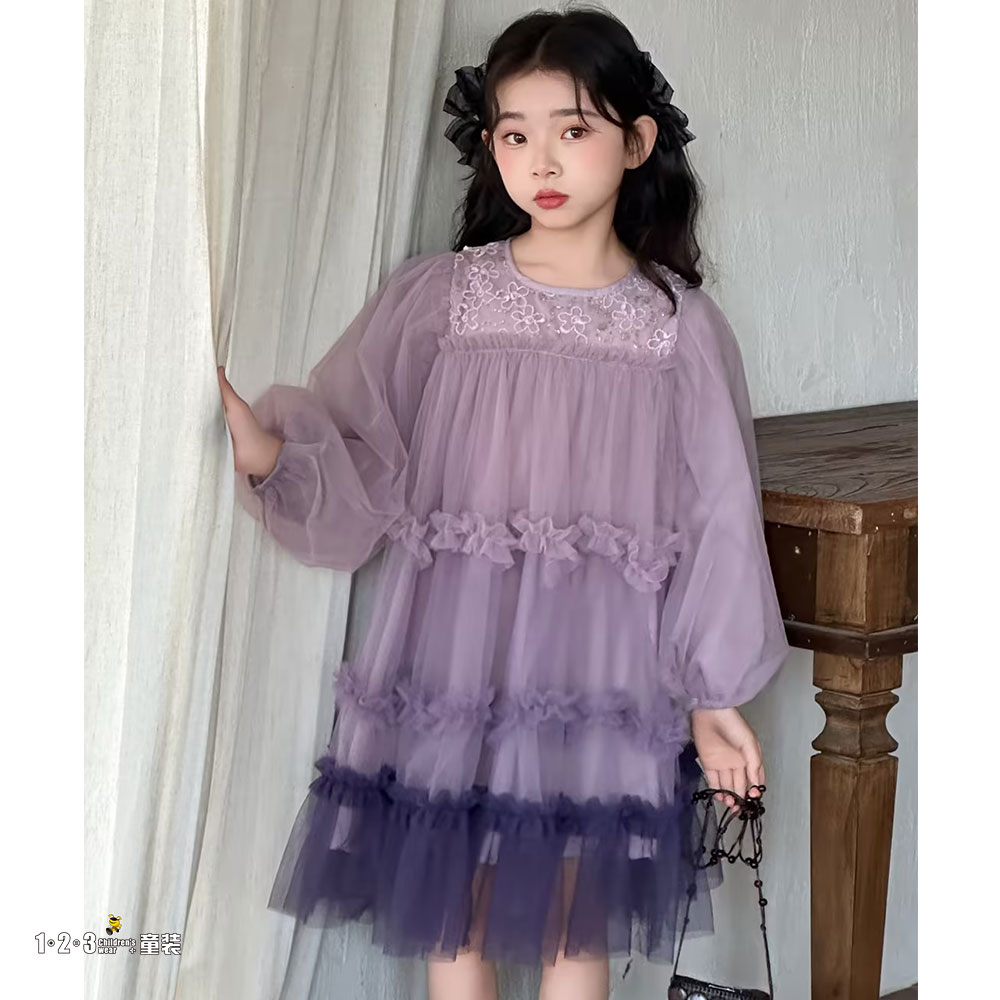 紫 春款 女中童8836 MSDD时尚长袖连衣裙123童装连锁
