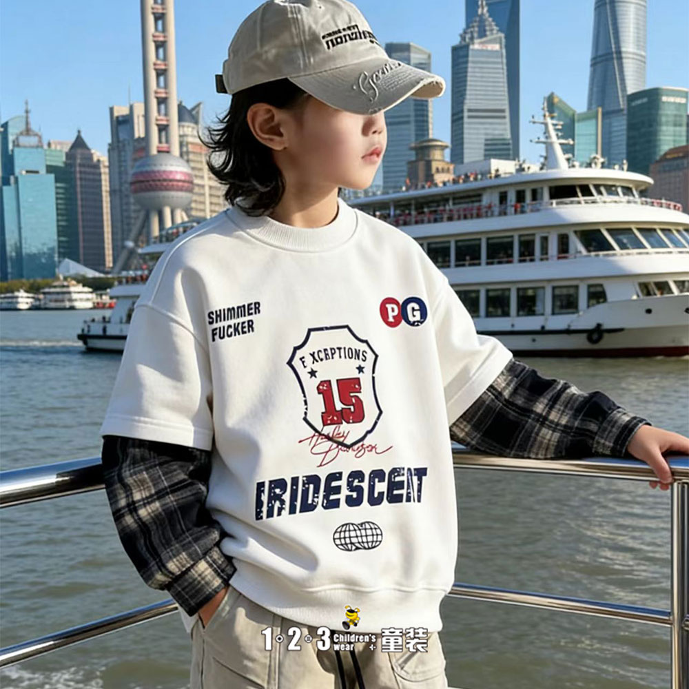 【特价】白 春款 男中童2671 FXDD时尚薄套头衫123童装连锁
