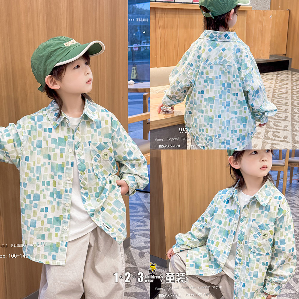 浅蓝 春款 男中童9703 WQDD时尚长袖衬衫123童装连锁