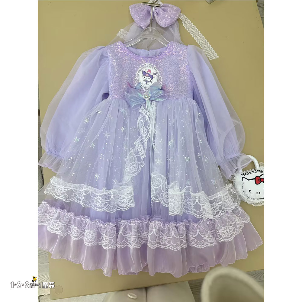 紫 春款 女中童21821 WNDD时尚长袖连衣裙123童装连锁
