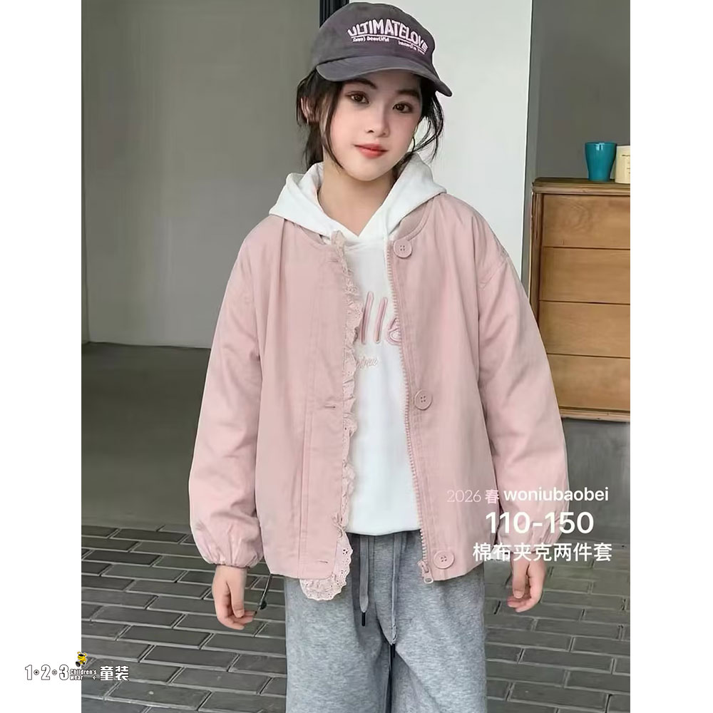 (两件套)粉 春款 女中童2603 WNDD时尚长袖套装123童装连锁