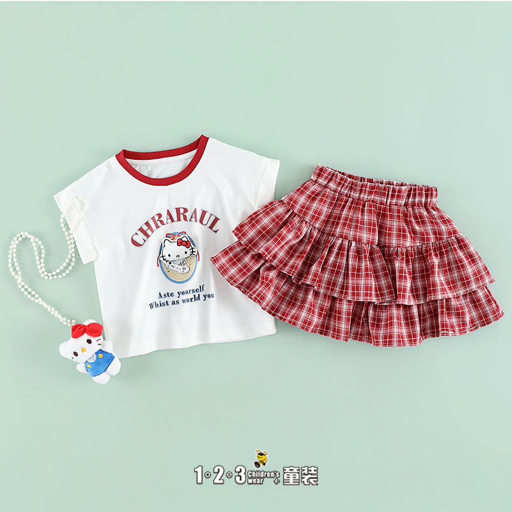 (多多同款)红 夏款 女小童6F20312 DDDD时尚短袖套装1+2=3童装连锁 返回首页 返回商品页