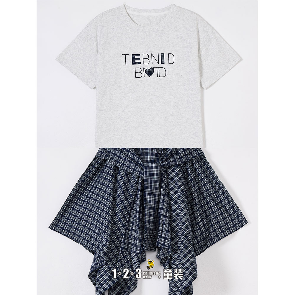 浅灰 夏款 女大童6F20840 DDDD时尚短袖套装1+2=3童装连锁