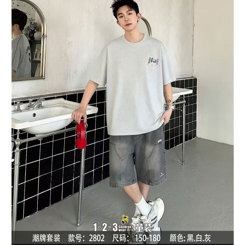 灰 夏款 男大童2802 DKDD时尚短袖套装123童装连锁