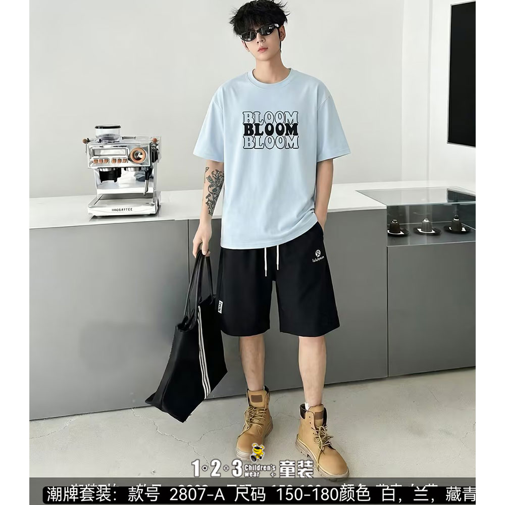 蓝 夏款 男大童2807-A DKDD时尚短袖套装123童装连锁