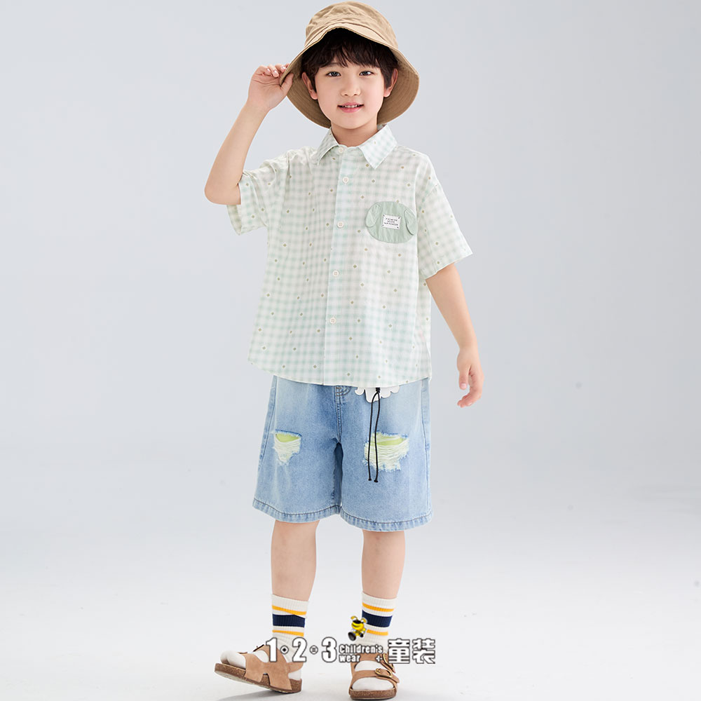 【五一限价25.9元】绿 夏款 男小童6M20393 FXDD时尚短袖衬衫1+2=3童装连锁