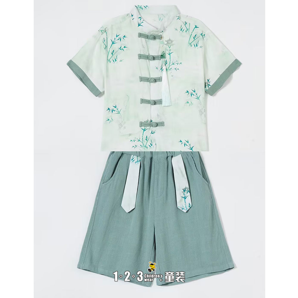 【五一限价41.9元】(多多同款)绿 夏款 男小童6M20436 FXDD时尚短袖套装1+2=3童装连锁
