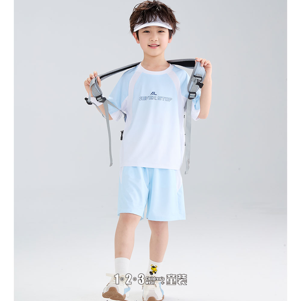 【五一限价30.9元】浅蓝 夏款 男小童6M20416 FXDD时尚短袖套装1+2=3童装连锁