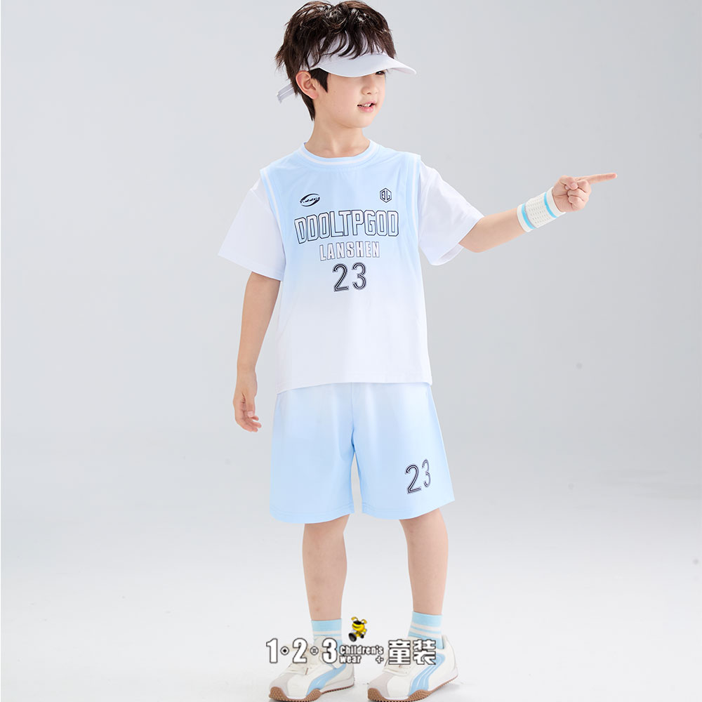 【五一限价39.9元】浅蓝 夏款 男小童6M20421 FXDD时尚短袖套装1+2=3童装连锁